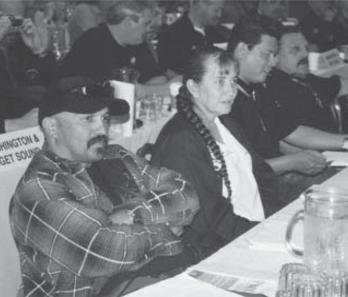 Several issues brought to the Convention floor required a standing vote to determine whether or not the issue was passed by the body. (Above) Rev. Jesse Jackson was one of several guest speakers, including Local 142’s Ah Quon McElrath, AFL-CIO Secretary-Treasurer Richard Trumka, Maritime Union of Australia General Secretary Paddy Crumlin, Columbian union leader William Mendoza, and California Governor Gray Davis. Pictured above are Hanalei Peters, Teddy Espeleta, Jerrybeth DeMello, Jackson, Luana Amano, and Martin Jensen.